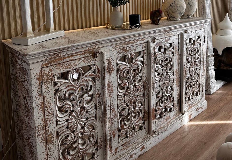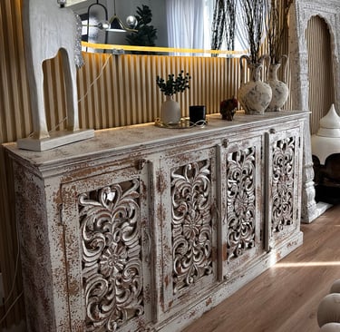Todo gran espacio necesita un ancla visual. En el comedor, suele ser un imponente aparador o bufetero artesanal. Elige una pieza que tenga una historia que contar, con tallados únicos o un acabado que le dé carácter. Esta será la joya de la corona, y el resto de los elementos orbitarán a su alrededor.